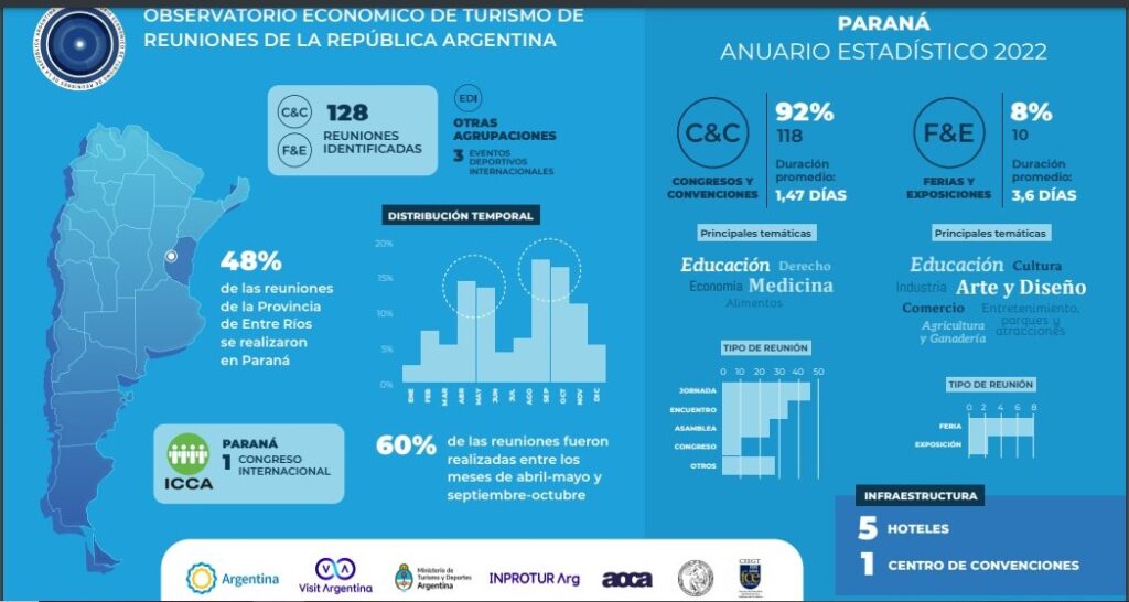 “Paraná ha demostrado, con la fuerza de sus clubes y sus instituciones intermedias, que en distintos momentos del año genera eventos que promueven la ocupación hotelera a la ciudad. Si no es el fútbol, es el básquet, el softbol, el hockey, el rugby. Nuestra ciudad es convocante y en este sentido hemos podido identificar que es el principal motivador de desplazamiento turístico”, agregó Clavenzani al respecto.