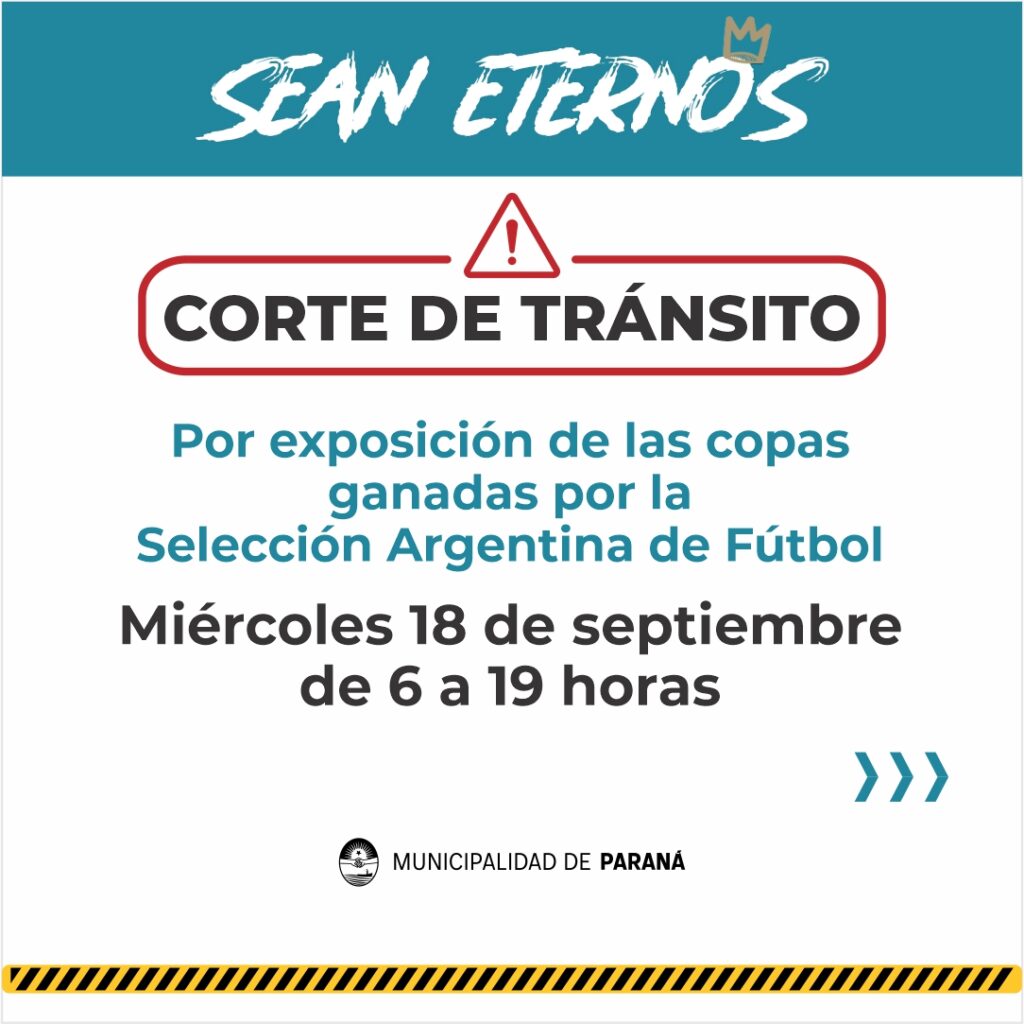 Por la llegada de las Copas, en Paraná habrá cortes de tránsito