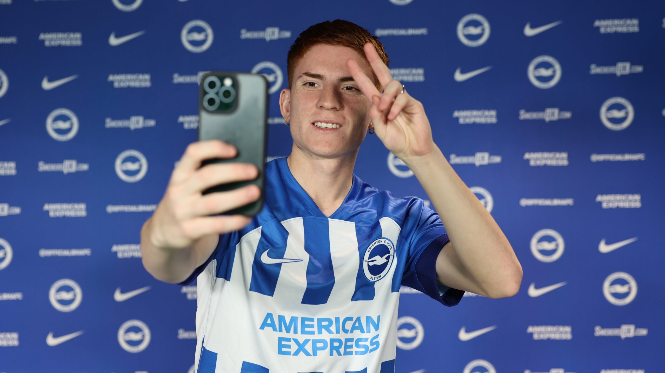 Valentín Barco llegó a Inglaterra y se probó la camiseta del Brighton & Hove Albion Football Club de la Premier League, donde se incorporó hoy en forma oficial.