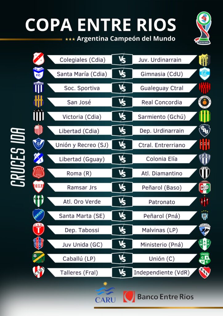 Copa Entre Ríos: Peñarol enfrentará a Santa Marta, Ministerio a General Campos y Patronato con Oro Verde
