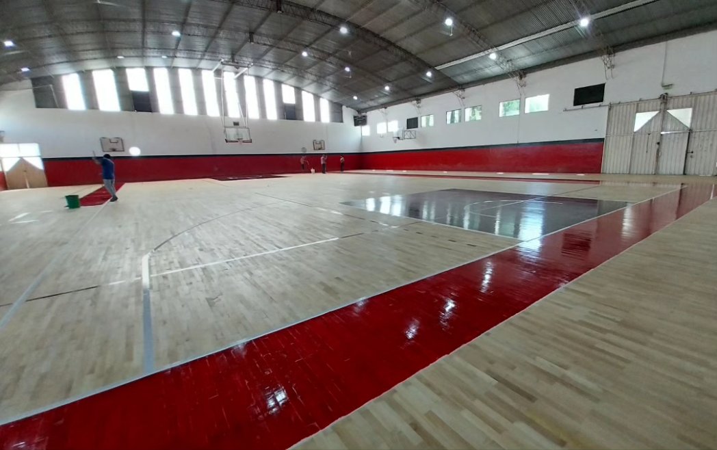 El gimnasio cubierto de la entidad “Rojinegra” está en su etapa final de la colación de un parquet para la práctica de básquet, vóleibol, patín y newcom.