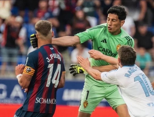 El arquero argentino Esteban Andrada generó un escándalo en la Segunda División del fútbol español, luego de dar un puñetazo al capitán rival al cierre del “derbi aragonés” entre el Real Zaragoza y el Huesca.
